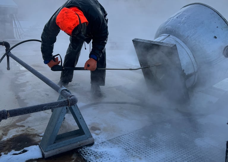 Pressure washing kitchen equipment, flooring, and rooftops.